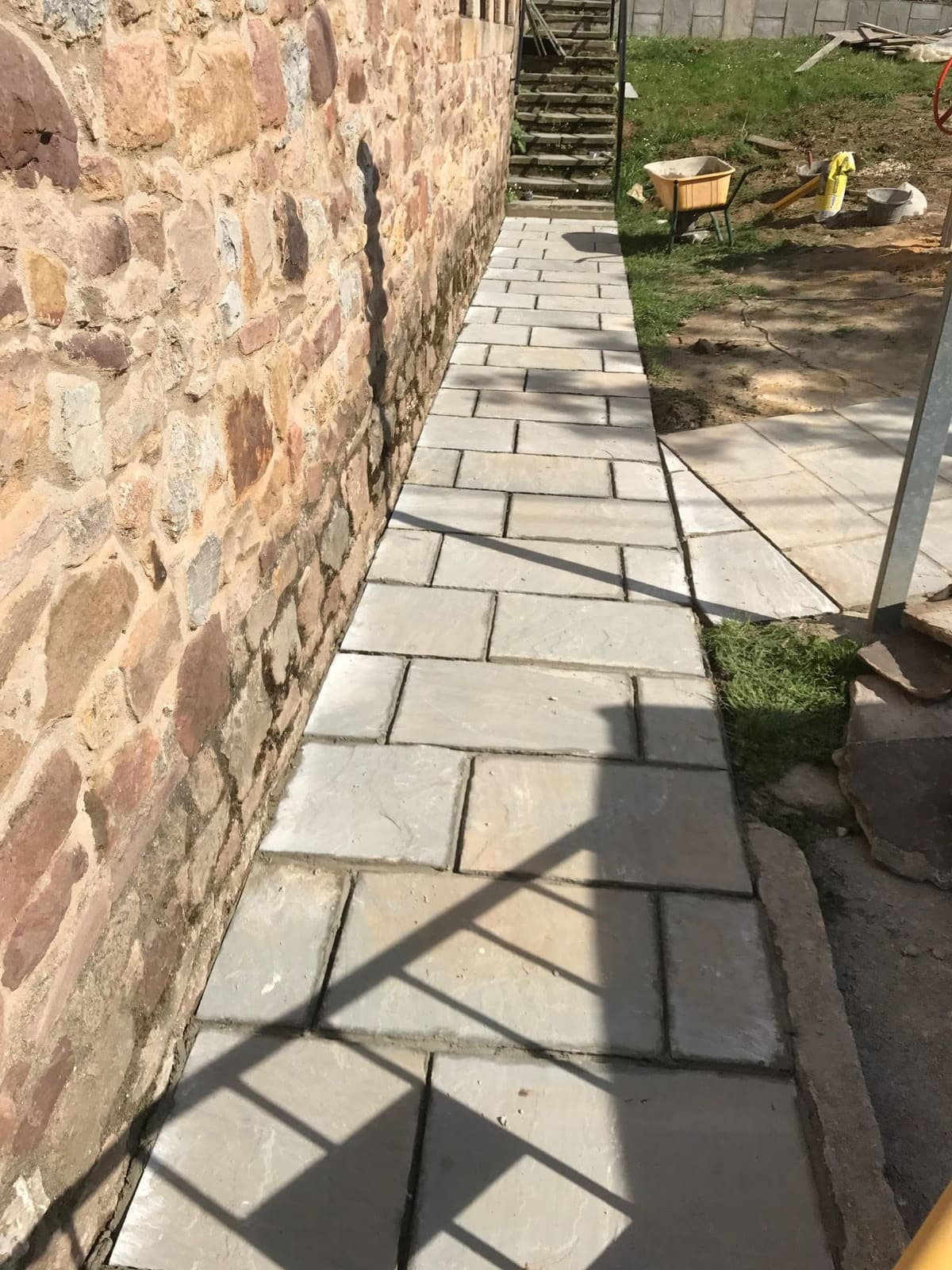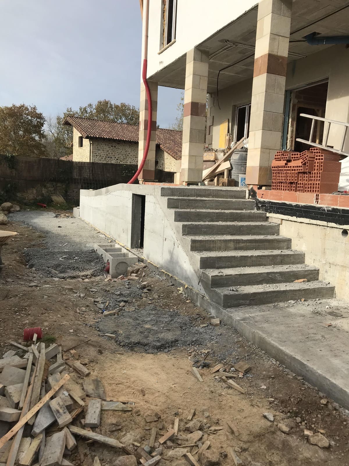 En las imágenes te mostramos algunos de nuestros trabajos, como el acabado de un acceso a vivienda y otra obra que tenemos en construcción en la que nos estamos encargando de todas las fases, desde el movimiento de tierras, excavación, cimentación, acceso para personas con movilidad reducida, estructura y repartición, apertura de rozas y posterior instalación de electricidad y fontanería, pintura, carpintería… hasta la entrega de vivienda a los propietarios.
